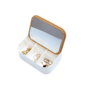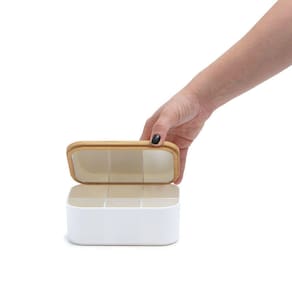 Esse é o organizador retangular com divisórias e espelho da OIKOS. Para guardar o que quiser: maquiagens, loções, esmaltes, itens de higiene, joias, acessórios de cabelo, miçangas e muito mais.Melhor amigo da organização: dentro do armário, ele organiza que é uma beleza. fora dele, traz uma bossa para a decoração, além de otimizar os espaços para caber mais objetos na bancada. Bem prático: já vem com um espelho grande para checar o visual sem dificuldade e, como se não bastasse, ele ainda é removível, podendo ser utilizado de forma independente ;)Tudo em seu lugar: as divisórias permitem separar e organizar melhor os objetos. fica muito mais fácil achar aquele brinco na correria, ou de evitar que seu colar preferido fique embolado.Decorativo e funcional: o corpo de plástico é útil e fácil de limpar, isso sem falar na tampa de bambu que dá um charme na peça, deixando cada cantinho mais arrumado. Durável e higiênico: o bambu é um material resistente e com propriedades que evitam a proliferação de bactérias.Armazenamento: o bambu não gosta de umidade ou contato com água por muito tempo, é bom guardar sempre em local seco e arejado.Dimensões do produto:Comprimento: 16cmLargura: 6cmAltura: 6cm