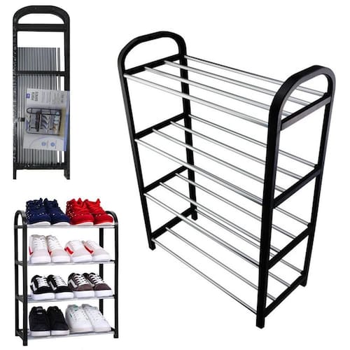 Organizador / sapateira desmontavel de plastico / metal com 4 andares validade: indeterminada tamanho aproximado: 58,5x41x18,5cm peso aproximado: 475g tipo de produto: organizador / sapateira desmontavel com 4 andares cor: composição: plastico e metal