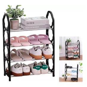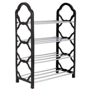 Organizador sapateira plástico metal 4 andares 60x42,5x18cm Cor: preto Organizador sapateira de plástico e metal 4 andares 60 x 42,5 x 18cm