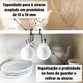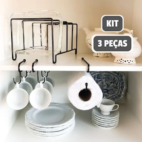 Organizador suporte cozinha armário prateleira kit 3 peças Kit 3 peças: porta papel toalha, porta xícaras e porta refratários Precisando de mais espaço em seu armário ou despensa A solução é improvisar mais um andar, ou dois... E isto, o organizador para armário faz muito bem todos os modelos com uma estrutura em aço, você tem muito mais espaço útil para aproveitar. Os organizadores de armário de cozinha aramado são ideais para proporcionar organização no armário e manter as louças em segurança, bem como otimizar o espaço, pois cria uma prateleira que permite o armazenamento produtos em lugares antes não ocupados. Versátil, pode ser na cozinha, despensa, lavanderia, possui fácil sistema de instalação, pois não se faz necessário o uso de parafusos ou ferramentas, já vai pronto pra uso. O visual é moderno e aumenta a capacidade de seu armário, além de ser feito em aço e com pintura eletrostática epóxi branca com tratamento antiferrugem. O kit contém: :: 1 unidade suporte de xícaras 6 ganchos tamanho 26 x 10 x 9 cm :: 1 unidade suporte de papel toalha tamanho 23 x 10 cm :: 1 unidade suporte refratários, tampas, panelas tamanho 28 x 16 x 14 cm - material: aço epóxi antiferrugem Marca: Não Informado
