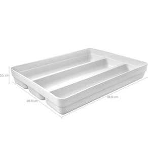 Garantia: 90 Dias / Peso: 420g / Cor: Branco / Ref: OL700BCF Dimensões: 26,9cm (C) x 34,6cm (L) x 5,5cm (A) Cuidados: Não lavar com materiais abrasivos. Comporta: Talheres ou pequenos utensílios.