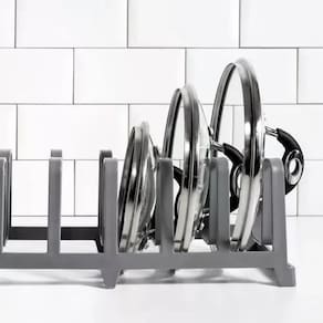 Sabe quando seu armário fica uma bagunça, pois as tampas se misturam Então, o organizador chegou para ajudar nas suas tarefas do dia a dia e não fazer você perder mais tempo tirando as tampas para achar aquela que realmente quer. Quando se trata de armários, otimizar os espaços é tarefa difícil e muitas vezes atrapalha na hora de cozinhar. Além de organizar as tampas de panelas, pode ser utilizado para organizar pratos, travessas, xícaras. Esse produto é feito de polipropileno que é um material com alta resistência à impactos, não transfere odor nem gosto aos alimentos, é leve, resistente à água fervente e o melhor o custo x benefício.