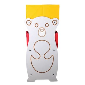 A estrutura lateral em MDF branco conta com um lindo desenho de ursinho, que torna o móvel ainda mais atrativo para as crianças. As hastes de madeira revestidas em PVC garantem resistência, enquanto as caixas coloridas em vermelho, amarelo, azul, verde e amarelo trazem alegria e vivacidade ao espaço.