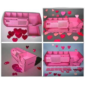 Organizadora de mesa porta treco joias com calendario em mdf Cor: rosa Bem vindo a nossa loja a lualki store tem os melhores produtos para seu uso. Se atentamos para total satisfação do cliente. Todos nossos produtos tem garantia e acompanha nota filscal. Prateleira de armazenamento, organizador de mesa de madeira multifuncional porta caneta caixa de armazenamento organizador de armazenamento estacionário de mesa com gaveta para home office esc. Otimização de espaços - ideal para quem busca organizar e aproveitar melhor o espaço em mesas, balcões, cômodas, entre outros locais medidas: altura 9,7cm, largura 10cm, comprimento 29,3cm Marca: Lualki