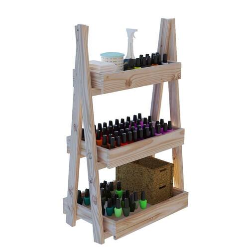 Estante arara com prateleiras e estrutura em madeira maciça de Pinus.