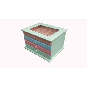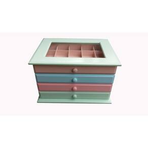 Nossos organizadores irão facilitar seu dia a dia com a organização e segurança que sua coleção precisa, além de proporcionar um ambiente mais sofisticado e elegante para qualquer idade. Produzida com MDF. A parte superior do gaveteiro, a tampa, possui visor com vidro transparente de 2 mm. Laqueado por fora e colorido por dentro podendo trocar de posição as suas gavetas. As gavetas tem divisórias diferenciadas de acordo com que você queira guardar, podendo guardar jóias, relógios, pulseira, anel, brinco e etc.