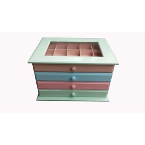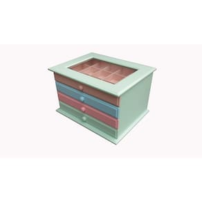 Nossos organizadores irão facilitar seu dia a dia com a organização e segurança que sua coleção precisa, além de proporcionar um ambiente mais sofisticado e elegante para qualquer idade. Produzida com MDF. A parte superior do gaveteiro, a tampa, possui visor com vidro transparente de 2 mm. Laqueado por fora e colorido por dentro podendo trocar de posição as suas gavetas. As gavetas tem divisórias diferenciadas de acordo com que você queira guardar, podendo guardar jóias, relógios, pulseira, anel, brinco e etc. Características do Organizador: - Cor externa, Colorido Laqueado - Tampa de vidro 2 milímetros - 4 gavetas com divisórias diferenciadas internas - Tamanho do Organizador, 34X26X21 Relógios e jóias não acompanham o organizador - Imagens meramente ilustrativas Marca: Não Informado Ean: 7898668010263