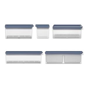Organizador de Geladeira Electrolux Experience 5 Unidades Preserve, organize e viva o melhor da sua casa O Organizador de Geladeira Electrolux Experience ajuda a manter sua geladeira sempre em ordem, além de poder ser utilizada em conjunto com outros produtos da mesma linha. Ideal para preservar, organizar e encontrar com facilidade tudo o que você precisa na sua geladeira. Multifuncional de verdade Ideal para armazenar frutas, legumes e verduras, inclusive os mais volumosos e com folhas largas, entre outros alimentos secos. Mais praticidade e organização Feito de material BPA Free, de alta qualidade e resistência, excelente transparência, facilitando a visualização do conteúdo sem a necessidade de abertura da tampa. Fechamento hermético Com vedação de silicone e fechamento hermético, possui selagem perfeita que preserva a textura, o aroma e o sabor dos alimentos por muito mais tempo. Conta com escorredor interno que impede o contato da água com os alimentos, evitando a deterioração precoce.