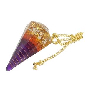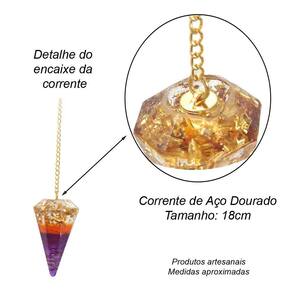 Orgonite Pêndulo Ametista com Folha de Ouro - Saint Germain Orgonite Pêndulo Ametista com Folha de Ouro - Saint Germain Poderoso pêndulo de orgonite serve como mostrador do inconsciente do operador, fazendo a comunicação do consciente com o inconsciente. Orgonite é um dispositivo que acumula a energia que está ao seu redor e a transforma em energia positiva, beneficiando tudo e todos a sua volta. Ele é geralmente utilizado para harmonizar e melhorar a energia dos ambientes, principalmente para proteger contra a poluição eletromagnética colocando-o em cima de televisão ou perto de torre de celular por exemplo . Ou para meditações, energização de alimentos ou Plantas. Pendular é pedir auxilio, conselho aquela força maior que pode se manifestar no caminho... Energia do pêndulo é energia de transferência, uma conversa em si mesma, onde eu pergunto e eu respondo.Todo poder está dento de nós e pendular exercita esse nosso poder, aflora nossa confiança no que sentimos como verdade.Composto exclusivamente por cristais translucidos, cria em torno de si um campo aurico excelente para estudo e meditação. A mudança é pessoal, mas o pêndulo faz sua parte, conheça todas nossas versões e saiba escolher a suaCristal - Raio Azul de purificaçãoTurmalina Negra - Raio infravermelhoAmetista - Raio Violeta de TransmutaçãoEsmeralda - Raio Verde de CuraRaio Violeta - Saint Germain ametista com ouro Fabricação: compostos de resinas, espiral em cobre, folhas em ouro, ametista, pedras e cristais naturais Dimensões:Altura: 3,5 a 4 cmLargura: 2,00 cmProfundidade: 2,00 cmPeso: 15 GramasCorrente de aço inox 35cm aproximadamente peso e medidas aproximados