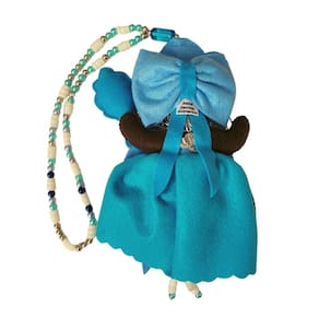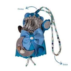 Informações do Produto: A pelúcia da mamãe iemanjá com guia é ideal para decorar ambientes e ser usada como amuleto de proteção. Iemanjá simboliza o amor maternal e puro, a fertilidade e a abundância.