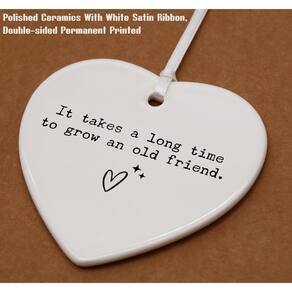 Nossos enfeites de coração são feitos com cerâmica de polimento de qualidade branca, bem embalados com 1 caixa rosa requintada. Impressão frente e verso e não descasca ou desbota. O padrão elegante fará com que ele se destaque em qualquer lugar da sua casa. Uma variedade de padrões e temas, acreditamos que sempre há um adequado para você. É um ótimo presente para aposentados, aniversário, Ação de Graças, Natal, Ano Novo, casamento, chá de bebê, dia de esportes, anúncio de gravidez, chá de panela, formatura, despedida de solteiro, Dia dos Namorados, etc. - Presentes surpresa: Este ornamento é um presente em si e pode ser dado a alguém sozinho; Também é adequado para colocar em sua cesta de presente, tornando sua cesta de presente mais emocional e criativa - Tamanho e qualidade: 7,3 cm L × 7 cm A; Inclui uma fita de cetim branca; Feito com cerâmica branca polida com um acabamento de esmalte brilhante impecável; Delicado e durável, não desbota - Embalagem segura: bem embalado com um saco de bolhas, 1 esponja e caixa de presente rosa requintada; protege bem o ornamento do coração - Impressão frente e verso: os padrões são impressos permanentemente diretamente no ornamento (não decalques ou adesivos) criando uma imagem duradoura que NÃO descasca ou desbotará; o padrão elegante, adequado para qualquer lugar que você queira decorar: árvores de Natal, mesa de cabeceira, penteadeira, mesa, jardim, portas, janelas, paredes e assim por diante - Ótimos presentes: nossos enfeites de coração são adequados para diferentes cenas ou festivais, para sua família, amigos, colegas, etc; uma variedade de padrões e temas, acreditamos que sempre há um adequado para você; Nossos ornamentos são ótimos presentes para aposentados, aniversário, Ação de Graças, Natal, Ano Novo, casamento, chá de bebê, formatura, chá de panela, despedida de solteiro, dia dos namorados, etc
