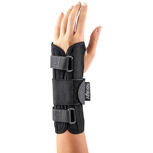 Órtese para Punho Confort Esquerda Hidrolight possui bolso interno que oferece maior conforto na hora do ajuste do produto, permitindo ao paciente, que o faça sem auxílio. A tala abaixo do punho e as duas hastes flexíveis na lateral, oferecem segurança na compressão sem limitar competamente os movimentos da articulação em tratamento. O ajuste do produto fica a critério e necessidade do paciente, através dos três fechos aderentes, sendo um elástico. Retém o calor devido ao material em neoprene, mantendo a região aquecida e auxiliando no alívio da dor. Indicações: Tratamento de patologias como: síndrome do túnel do carpo, tendinites, tenossinovites, lesões ligamentares, reabilitação de fraturas de punho e antebraço e afecções leves do punho que necessitam de imobilização parcial da articulação. CONSULTE UM ESPECIALISTA. Tamanho: PP/P 11cm - 17cm /M 17cm - 20cm /G/GG 20cm - 26cm Autorização e Cadastro ANVISA: 8.07.582-1 /80758210002