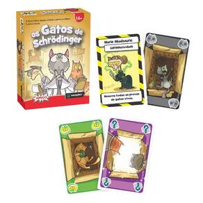 Os Gatos de Schrödinger é um jogo divertido que brinca com a ideia da física quântica e os paradoxos do gato de Schrödinger! A cada rodada, cada jogador tenta determinar o número mínimo de gatos vivos, gatos mortos ou caixas vazias em todas as caixas no laboratório de Schrödinger. Você aposta em certas possibilidades, usando regras simples: escolha cartas que alteram o estado do seu gato, mas cuidado, pois tudo pode não passar de um blefe!