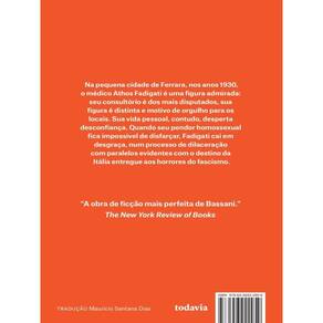 Publicado em 1958, este é o primeiro de cinco livros sobre Ferrara, cidade italiana onde o autor viveu. O médico Athos Fadigati é uma figura admirada. Quando seu pendor homossexual fica impossível de disfarçar, Fadigati cai em desgraça, num processo de dilaceração com paralelos evidentes com o destino da Itália entregue aos horrores do fascismo. Bassani pertence a uma extraordinária geração de autores judeus italianos, como Natalia Ginzburg e Primo Levi.