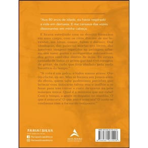 “Aos 80 anos de idade, eu havia respirado a vida em demasia. E me cansava das vozes dissonantes em minha cabeça. E ficava entediado com os desejos humanos em meu corpo, com os ritos diários de me levantar, me lavar, comer, beber e dormir. Das ideologias, das palavras mortas nos livros, das horríveis imagens repetidas na paisagem urbana, dos meus gestos e movimentos automáticos, dos gritos contidos dentro de mim. Eu estava cansado de todos os gritos que não tive coragem de gritar, de tudo que fora abafado pela onda frenética do tempo.” “A vida é um palco, e todos somos atores. Outro clichê, eu sei. Mas se formos um pouco além do óbvio, quem sabe poderemos perceber que brincar com máscaras talvez seja o melhor a se fazer para não correr o risco de cravar na pele máscara única. Qual é a máscara que me cabe? Com o tempo, a gente se esquece no espelho. O que é máscara? O que não é máscara? O rosto se conforma com a forma do traiçoeiro.” Ean: 9786581275426