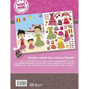 A coleção MINIMIKI apresenta às crianças culturas de diferentes países. A linha Os vestidos é bilíngue, ensina curiosidades sobre o país de origem das personagens e acompanha 300 adesivos diferentes. Neste livro as crianças podem vestir bonecas de diferentes países com as roupinhas mais lindas. Poderão observar a Torre Eiffel na França, conhecer o templo da Sagrada Família na Espanha, visitar a Estátua da Liberdade nos Estados Unidos, conhecer a dança do Taiti, se encantar com o Taj mAhal na Índia, celebrar o Natal na Rússia, apreciar um lindo jardim no Japão. E muito mais. É só escolher os adesivos e colar nas personagens.