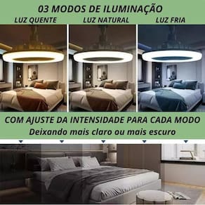 Oscilação Confortável: Lâmpada de Teto com Ventilador Oscilante 30W com Controle Design 2 em 1: Combinando Ventilador e Iluminação Todas as funções controladas através de um Controle Remoto fácil de usar Três velocidades ajustáveis do ventilador Altere a temperatura da luz entre Branco frio, Luz natural e Luz quente e também a intensidade da iluminação, deixando mais clara ou mais escura.