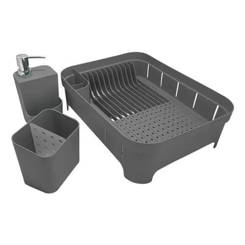 "*kit_3_escorredor_louça/_talher_porta_detergente_trium_chumbo