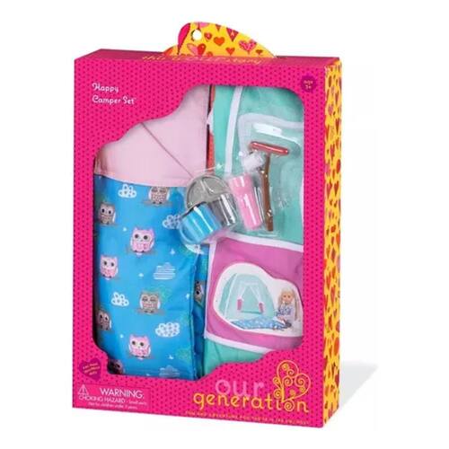 Explore o ar livre com o conjunto Our Generation Happy Camper, ideal para a maioria dos pulsos de 18 polegadas. Este conjunto inclui:- 1 saco de dormir- 1 palito de marshmallow e salsicha- 1 prato de acampamento- 1 xícara de acampamento- 1 lanterna que não funcionaA boneca e a roupa são vendidas separadamente. Projetado pela Battat, uma marca conhecida por sua qualidade e atenção aos detalhes, este conjunto promete durabilidade e horas de jogo criativo. Cada elemento é cuidadosamente criado para complementar a experiência de acampar, permitindo que as crianças desenvolvam histórias criativas e aventuras ao ar livre. Ideal para presentear e incentivar o amor pela natureza e a exploração em crianças.