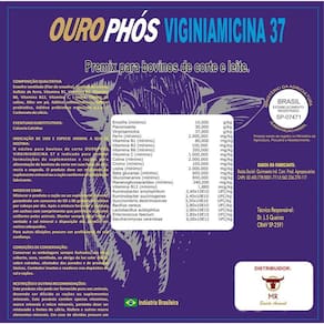 Referência bovinos: 1 kg de Ourophós Virginiamicina rende para 370 cabeça/ dia com ingestão de 100 mg por animal.