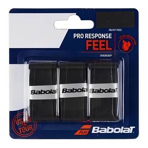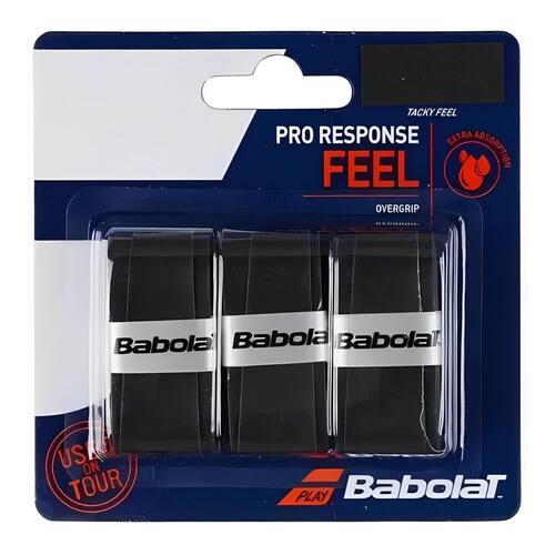O Overgrip Babolat Pro Response é uma excelente opção que conta com um bela aderência e absorção do suor. O pacote vai com 03 unidades na cor preta, possui alta absorção da transpiração e ótima durabilidade. Cada grip pesa 3,8g, e tem 0,45mm de espessura, indicado para todos os tipos de jogadores e raquetes; - Perfil: Tênis;- Material: Emborrachado;- Origem: Importado.