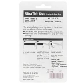 Conheça as características do Overgrip Yonex Ultra Thin Grap 0.4mm Cartela com 03 Unidades Branco- Perfil: Tennis;
