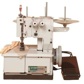 A máquina de costura galoneira serve para tecidos médios e leves,
