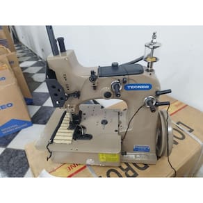 Corte de linha manual. Acionamento manual do calcador. Máquina utilizada para fazer o debrum na borda de tapete ou carpete. Para tecidos médios e pesados Velocidade 1900 PPM Largura do ponto 11mm 01 agulha 02 linhas Espessura máxima de agulha - 29 Altura do calcador 11 mm Trabalha com looper inferior. Máquina de Costura Completa com mesa fórmica, pé de ferro e motor . Marca: Não Informado
