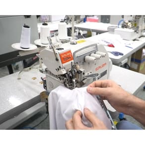 Máquina de costura industrial Overlock 3 fios com base cilíndrica, transporte duplo. Parada de agulha inferior ou superior e regulagem de velocidade. Lubrificação através de bomba de óleo com micro lubrificação da barra da agulha. Protetor de vista. Regulagem do tamanho do ponto através de botão. Motor Direct Drive. Base Cilíndrica com 148mm de circunferência.Alça retrátil