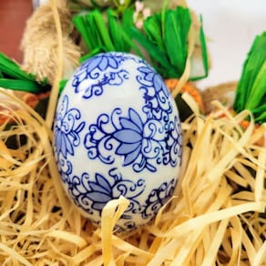 Transforme sua Páscoa com o Ovo Decorativo de Porcelana Floral Arabesco Azul e Branco e adicione um toque de elegância à sua decoração. Adquira o seu agora e faça desta Páscoa uma celebração ainda mais especial.