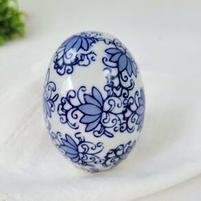 Ovo de Páscoa decorativo em porcelana Cores: Azul e branco com detalhes florais arabescos Material: Porcelana de alta qualidade para acabamento refinado Peso: 140g Design clássico e sofisticado, ideal para a Páscoa