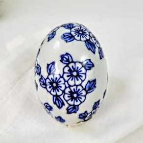 Ovo de Páscoa Decorativo de Porcelana Azul e Branco Floral - Elegância e Tradição para Sua Decoração