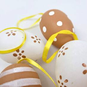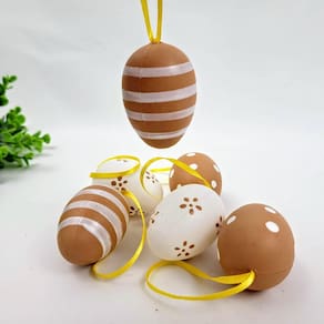 Ovo De Páscoa Marrom E Branco 6x4cm Pendente Kit 6pc Páscoa é uma das datas mais importantes para os cristãos, é a celebração da ressurreição de Cristo após sua morte e crucificação. A Páscoa vem do termo hebraico Pessach, que significa passagem, e recebe esse nome pois marcava o final do inverno e a chegada da primavera, por isso temos muitas cores, flores e jardins nas decorações da Páscoa, trazendo essa alegria e energia que a natureza nos transmite. A decoração de Páscoa da sua casa, ou da sua loja pode ficar ainda mais charmosa com esse kit de ovos pendentes da Inigual Decor, que vai ajudar a compor sua decoração, deixando seu ambiente ainda mais bonito