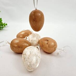 Ovo De Páscoa Marrom Gliter 6x4cm Pendente Kit 6pc Páscoa é uma das datas mais importantes para os cristãos, é a celebração da ressurreição de Cristo após sua morte e crucificação. A Páscoa vem do termo hebraico Pessach, que significa passagem, e recebe esse nome pois marcava o final do inverno e a chegada da primavera, por isso temos muitas cores, flores e jardins nas decorações da Páscoa, trazendo essa alegria e energia que a natureza nos transmite. A decoração de Páscoa da sua casa, ou da sua loja pode ficar ainda mais charmosa com esse kit de ovos pendentes da Inigual Decor, que vai ajudar a compor sua decoração, deixando seu ambiente ainda mais bonito
