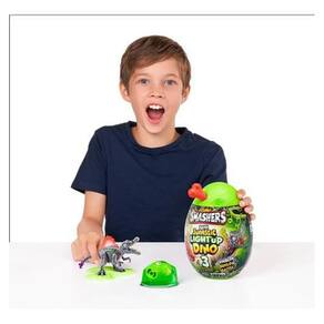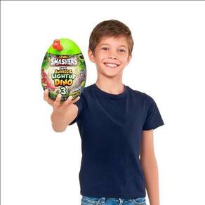 Dentro do ovo, as crianças irão descobrir mais de 10 surpresas emocionantes enquanto cavam através de areia e slime para encontrar peças de dinossauro. Ao construir seu próprio Smash-o-saur, elas testemunharam sua incrível função de iluminação e ouvirão seus rugidos de empolgação. Com três dinossauros únicos para colecionar, cada um com seu próprio mistério, a emoção da surpresa está sempre presente.