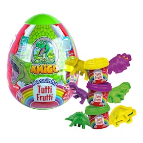 O ovo do Dinossauro Amigo veio para alegrar as atividades da criançada, Ele vem em uma divertida embalagem em formato de ovo de dinossauro e contém massinhas coloridas com aroma tutti frutti e moldes de dinossauros para a criança brincar e criar figuras. Ideal para estimular a criatividade, coordenação motora e imaginação das crianças, o brinquedo é indicado para maiores de 3 anos. Uma ótima opção para presentear a criançada que são fãs do dinossauro.