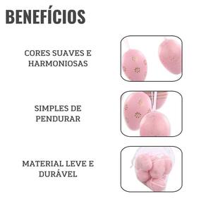 O Saco Ovos Páscoa Rosa Estampados da Cromus traz um toque especial para a decoração da sua Páscoa. Com 9 unidades de ovos penduráveis de 6cm, cada um decorado com delicadas estampas em rosa e detalhes em dourado, esse conjunto é ideal para trazer um charme único e elegante para o seu ambiente festivo.