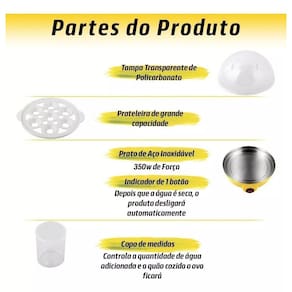 O cozedor de ovos portátil 110v é ideal para quem mantém uma vida corrida e gosta de otimizar tempo e manter uma alimentação saudável. Prático, basta acrescentar um pouco de água e você poderá cozinhar até 7 ovos em poucos minutos. Acompanha copo dosador de água que permite que você faça vários pontos de cozimento dependendo da quantidade de água.