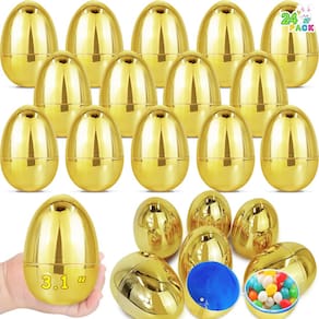 - Design articulado, fácil de usar: cada ovo de Páscoa dourado vem com uma dobradiça para manter a parte superior e inferior juntas, evitando a perda da outra metade do ovo quando em uso; fácil para as crianças abrirem o ovo de Páscoa de plástico, colocar e tirar presentes de Páscoa