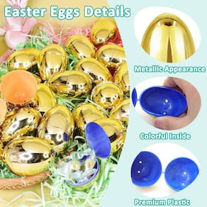- Ovo de Páscoa dourado brilhante: cada ovo de Páscoa grande é coberto com uma camada dourada metálica que reflete a luz; quando as crianças encontram esses ovos dourados durante os jogos de caça aos ovos de Páscoa, ele adiciona emoção e alegria à experiência da festa de Páscoa