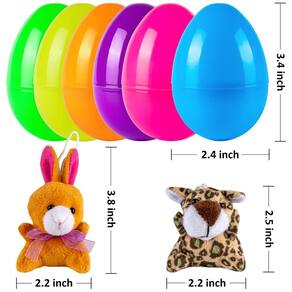 Sofier Ovos de Páscoa com brinquedos de animais - PACOTE COLORIDO: 12 mini bichos de pelúcia diferentes com 12 ovos de Páscoa de plástico (6 x 8 cm) de 6 cores. Recheios de cesta de Páscoa ricos e coloridos e lembrancinhas de festa para crianças e adultos. Ótimos ovos de páscoa pré-cheios para celebrar a Páscoa. - Ótimos lembrancinhas de festa: o conjunto de ovos de páscoa recheados é uma ótima alternativa aos doces para um ovo de Páscoa. Perfeito para caça de ovos de Páscoa, enchimento de ovos de Páscoa e troca de sala de aula para crianças. - Alta qualidade: 12 pequenos bichos de pelúcia feitos de tecido de qualidade com design fofo e detalhes ricos. Resistente, bonito e macio ao toque e segurar. com 12 ovos de páscoa vibrantes. - Amplamente aplicável: ovos de Páscoa com recargas de animais de pelúcia. Perfeito para caça aos ovos de Páscoa, eventos de festa de Páscoa, recheios de cesta de Páscoa, troca de sala de aula para crianças, máquina de garras, enchimento de meias e qualquer outra festa infantil. Os animais de pelúcia podem ser pendurados em bolsas e chaveiros, pequenos brindes para troca de presentes. - QUARANTEA DE SATISFAÇÃO: Nosso conjunto de ovos de Páscoa com brinquedos de animais de pelúcia oferece um pacote econômico de tamanho e quantidade, design fofo, alta qualidade e atendimento ao cliente atencioso. Tomamos sua opinião como prioridade e esperamos prosperar com sua confiança e apoio. Se tiver alguma dúvida, não hesite em contactar-nos.