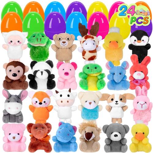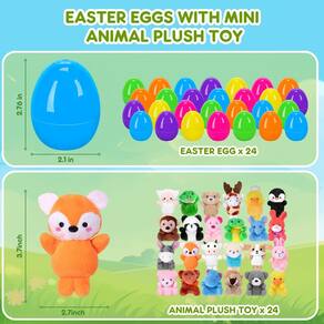 brinquedos de páscoa - Conjunto de ovos de páscoa pré-cheios: este conjunto de mini brinquedos de pelúcia de ovos de páscoa pré-preenchido inclui 24 ovos de páscoa de plástico e 24 estilos diferentes de mini brinquedos de pelúcia de animais. Encheremos mini brinquedos de pelúcia em ovos de páscoa para crianças, o que será um ótimo presente de páscoa para crianças; os ovos de páscoa vêm em , e as crianças podem escolher livremente suas cores favoritas como presentes de ovo surpresa de páscoa. - Design de brinquedo de pelúcia fofo: nossos enchimentos de ovos de páscoa - mini brinquedos de pelúcia de pelúcia para crianças são projetados de forma única e interessante, com cores brilhantes, imagens vivas, fofos e engraçados, que podem atrair instantaneamente a atenção das crianças na festa de páscoa; e cada brinquedo de bicho de pelúcia vem com um cordão na cabeça, você pode pendurá-lo em qualquer lugar e decorar sua festa de Páscoa. - Diversão e diversão infinita: em uma festa de páscoa familiar, você pode esconder ovos de páscoa cheios de mini animais de pelúcia no quintal e brincar de ovos para jogos de caça aos ovos de páscoa com crianças. As crianças definitivamente ficarão muito animadas para encontrar esta surpresa; ou como um presente de cesta de Páscoa para crianças com uma cesta de páscoa cheia de presente! - Qualidade do material, sinta-se à vontade para brincar: este conjunto de brinquedos de pelúcia de ovos de páscoa pré-preenchido para crianças é feito de materiais de alta qualidade, e os animais de pelúcia são super macios e confortáveis para as crianças tocarem com segurança; os ovos de páscoa são feitos de plástico de alta qualidade, espessos, suaves e duráveis, de excelente qualidade, sem rebarbas, então não há necessidade de se preocupar com isso prejudicando seus filhos. - Presentes de festa de páscoa de alta qualidade: este ovo de páscoa cheio de brinquedos de pelúcia é uma excelente escolha para prêmios de caça aos ovos de páscoa, decorações temáticas de páscoa, enchimentos de cesta de Páscoa, enchimentos de sacolas de presente, presentes de festa de páscoa, recompensas escolares e muito mais.