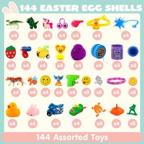 - Pacote supereconômico. Ovos de Páscoa pré-cheios incluem 144 peças de ovos com brinquedos inovadores.