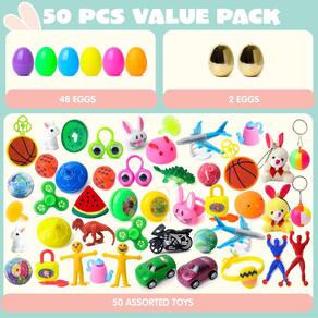 - Pacote super econômico: mergulhe na melhor experiência de Páscoa com nosso pacote de super valor! Você receberá 48 pacotes de cascas coloridas de ovos de Páscoa de 6 cm e 2 ovos de plástico preenchidos com ouro com 50 adesivos (os brinquedos incluem brinquedo Mochi, pulseiras de Páscoa, carros de puxar, pelúcia de coelho, anéis, borracha animal, ioiós, piões, chaveiro e dinossauro, etc.). É a solução perfeita para diversão de Páscoa sem complicações!