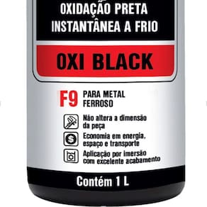 Oxi Black F9 é uma composição de agentes oxidantes fortes, à base de ácidos inorgânicos, que promove a oxidação completa e instantânea de superfícies metálicas, formando uma camada preta de acabamento. Indicado para armamentos, ferramentas, parafusos, porcas, objetos de decoração, etc. Aplicável por imersão da peça na solução de Oxi Black. Fornecido em embalagens plásticas de 1L. Durável, consistente e uniforme. Sem alteração dimensional ou estrutural. Economia de energia processo a frio . Odor: característico, picante Densidade a 25ºC: 1,05 - 1,20 g/mL Conteúdo: 1L Dimensões: 95 x 200mm Peso: 1,183kg Marca: Tapmatic Modelo: Oxi-Black F9 SKU: 13020