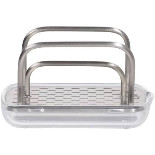 O suporte de esponja OXO Good Grips é a solução ideal para manter sua pia organizada e higiênica.