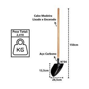 Material do Cabo: Madeira de Lei Lixado e Envernizado.