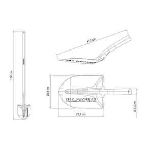 - A pá é fabricada em aço carbono especial de alta qualidade, cortada a laser;