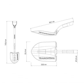 - A pá é fabricada em aço carbono especial de alta qualidade, cortada a laser;