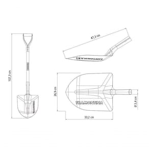 - A pá é fabricada em aço carbono especial de alta qualidade, cortada a laser;